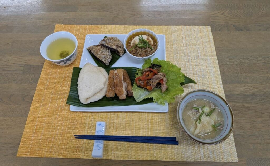 ④デザートは真ん丸ごま団子を平らにして油を少量にし、揚げ焼きで時短にしました。